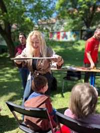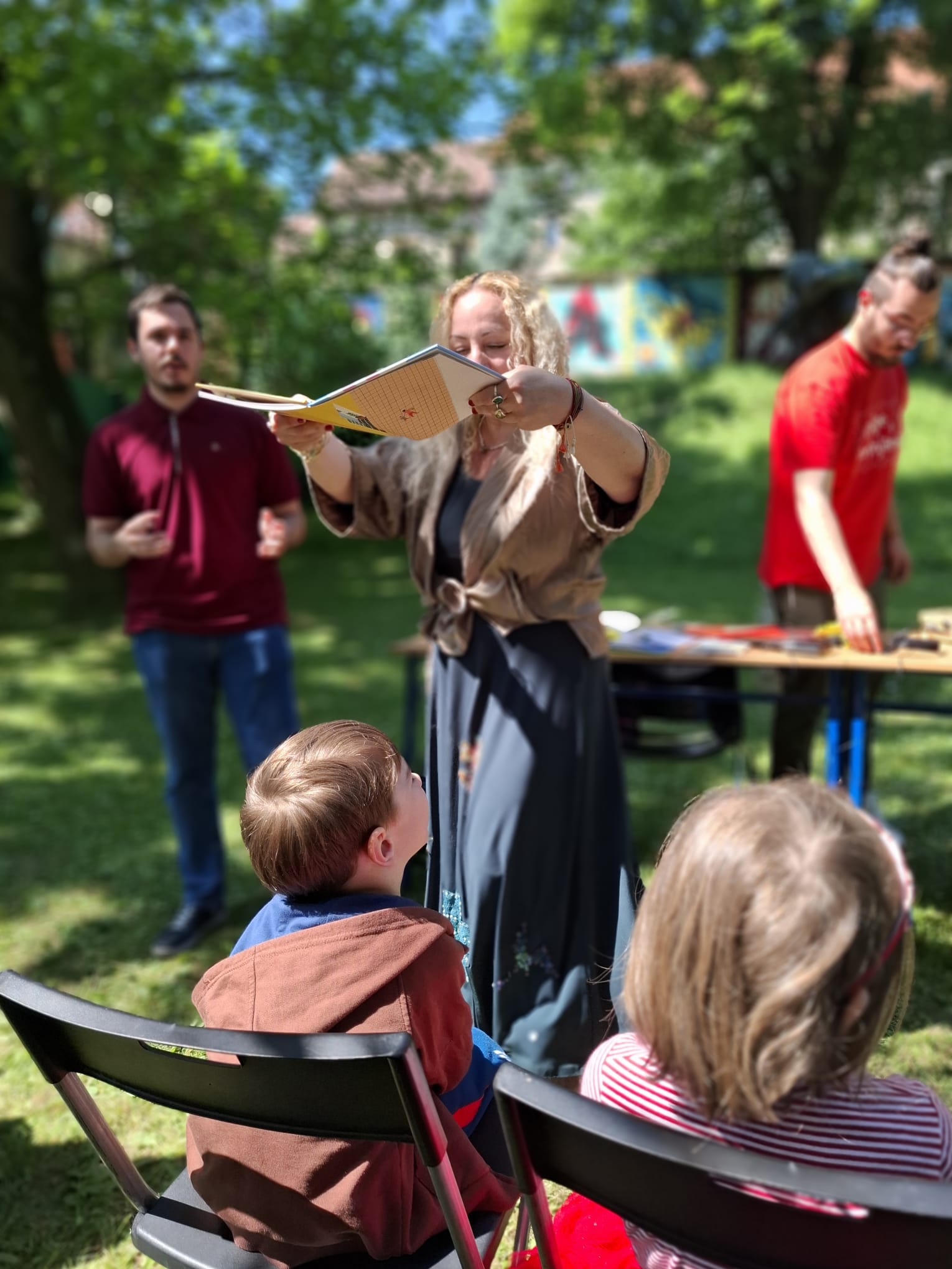Družili smo se s autoricom i pripovjedačicom iz Grčke Evom Gerokosta koja nam je pročitala svoju knjigu „Na čičak“, gdje je u središtu priče dječak s cipelama na čičak, koji se , s osim s vezicama bori s vlastitim osjećajima i čvorovima u srcu. Nakon priče, smo imali radionicu, gdje su djeca morala odvezati svoje čvorove na špagi, morali smo biti jako brzi. Projekt je obuhvaćao i druge pisce iz različitih zemalja Europe, gdje smo se upoznali s još jednom pričom „Nevidljiva Kuća“ makedonskog autora Vane Kosturanov, gdje djevojčica Kala mora napustiti svoj dom, gdje odlazi na dugo, iscrpljujuće putovanje bez kraja, gdje joj nedostaju djeda, baka, njezina kuća i njezina omiljena igračka zeko. Nakon priče, djeca su imala sto pitanja ( kojim jezikom ti pričaš, jer je autor pričao na svom materinjom jeziku).